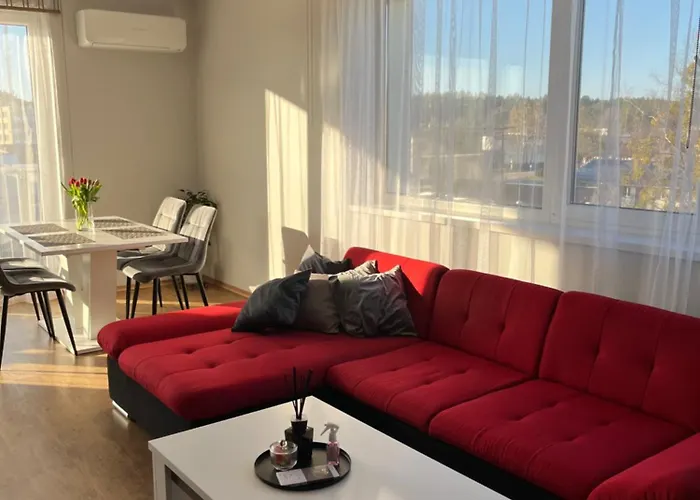 A cozinha do apartamento Holiday Home está equipada com forno e máquina de lavar loiça. A estação de comboios Amatu mokykla está a apenas 450 metros de distância.
